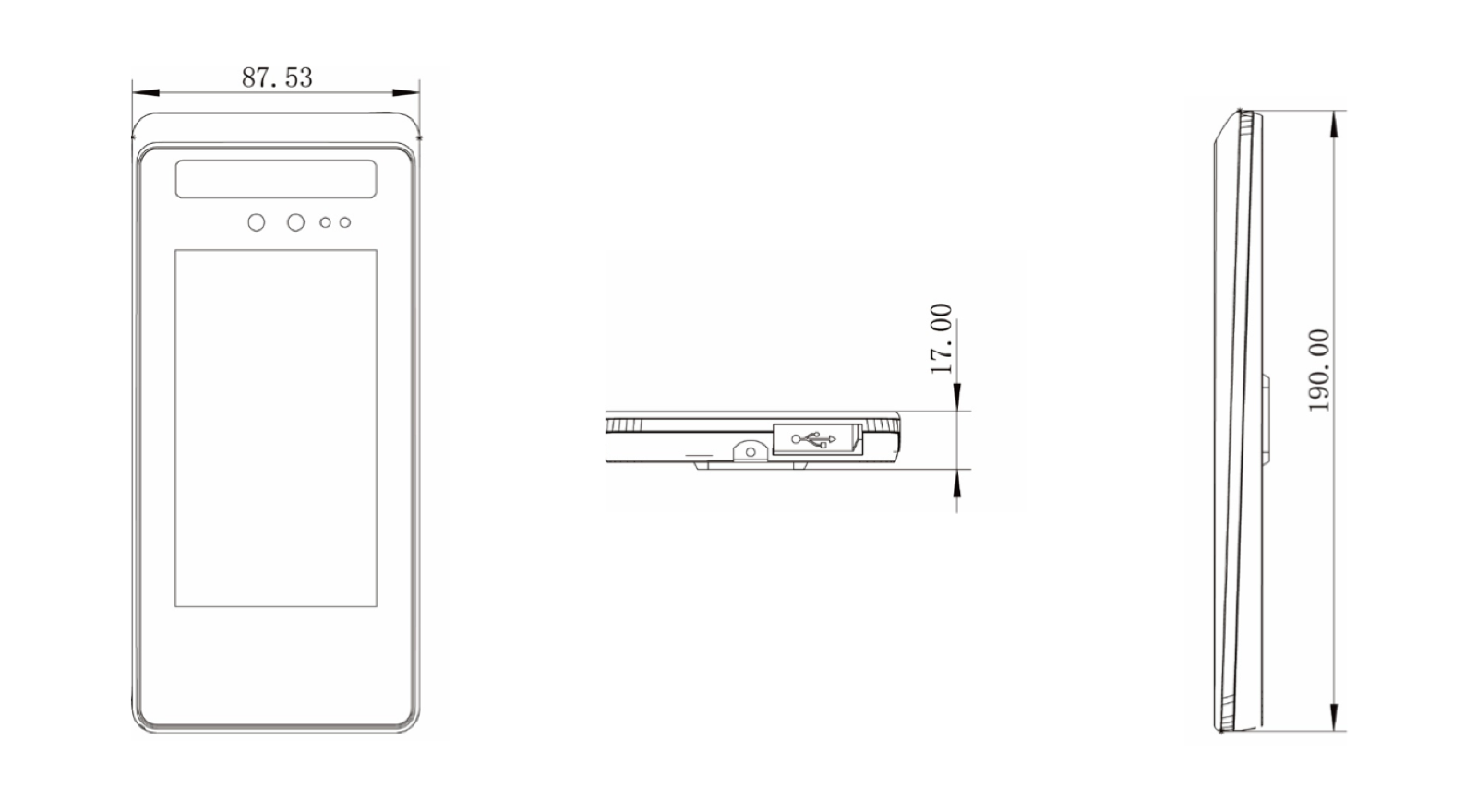 - Device dimension:190.00 mm * 87.53 mm * 17.00 mm